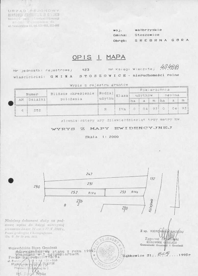 Przetarg na sprzedaż działki nr 252 w Srebrnej Górze